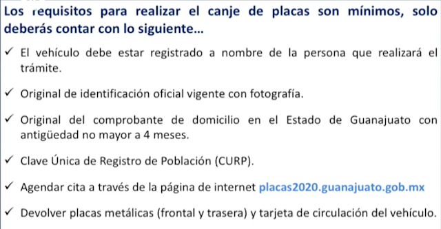 Celaya, Gto. (26 de julio de 2020).- Aunque ha sido cuestionada la inversión que hará el gobierno del estado en las nuevas placas, que entregará de manera gratuita a quienes no tengan adeudos, los empresarios plantearon y apoyan la necesidad del replaqueo, por razones de seguridad, que es uno de los principales problemas de la entidad, junto con el de la pandemia, que también se está atendiendo.