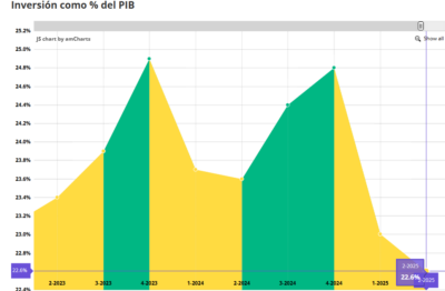 Debido a la contracción de la inversión en el segundo trimestre de 2025, que disminuyó en 5.9% en su comparación anual, debido a una reducción del 20% en la inversión pública, asociada al proceso de consolidación fiscal y a la conclusión de las megaobras del sexenio anterior, y del (-)4.3% en la privada, que representa el 90% de la inversión en México, apunta a que 2025 será el año de menor crecimiento en puestos de trabajo formales en más de dos décadas, excepto 2009 y 2020, años de crisis y pandemia.