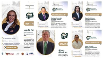 Además de esta conferencia magistral, programada para el 6 de noviembre a las 18:00 horas, en el Gimnasio Auditorio del Instituto Tecnológico de Celaya, el viernes 7 de noviembre se realizará el Panel Empresarial: “Celaya y el Bajío: Nodo Logístico de México”, que será moderado por la secretaria de Economía, Claudia Cristina Villaseñor Aguilar, y el Panel Empresarial: “De Celaya al Mundo: el nuevo eje económico sobre rieles”, moderado por María Guadalupe Robles León, secretaria de Turismo e Identidad, en los que participarán: Álvaro Giménez Gil, director del Grupo Azvi; Enrique Armando González Muñoz, presidente del Clúster Logístico y de movilidad de Guanajuato; Jorge Enrique Almanza Mosqueda, CEO de Autotransportes de Carga Tresguerras.