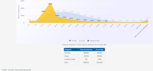 El registro nacional destaca diversos aspectos, entre ellos, el incremento de desaparición de mujeres entre los nueve y los 24 años. En general, el 39.90% de las personas desaparecidas son mujeres.
