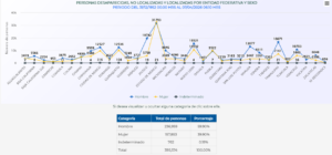 Por entidad federativa, la Ciudad de México y el Estado de México ocupan el primer lugar con 14 mil 670 personas desaparecidas; seguido de Tamaulipas con 13 mil 719; Jalisco con 12 mil 733; Michoacán con 7,184; Nuevo León con 7,263; Veracruz con 7,184; Sinaloa con 7,139; Sonora con 5,960; Guanajuato con 5,662, y Baja California con 4,932.