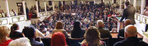 Kenia López Rabadán, presidenta de la Mesa Directiva de la Cámara de Diputados, sostuvo que la Constitución, como en su origen -que dio estabilidad a la nación-, debe ser un instrumento para pacificar al país, mediante la construcción de un acuerdo incluyente, que respete la pluralidad y el equilibrio de poderes, en una nueva realidad. Como parte de la ampliación de los derechos políticos de las mujeres, en este aniversario tres mujeres hicieron uso de la palabra. Y enfatizó que la Constitución debe representar también a quienes piensan distinto y no a un solo pensamiento dominante.