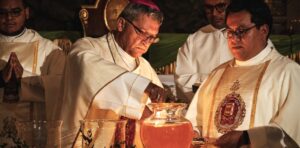 Por disposición episcopal de Don Víctor Aguilar Ledesma, la Misa Crismal, donde bendicen de los óleos para la impartición de los sacramentos y renovación de los votos sacerdotales, se realizó este miércoles a las 11:00 horas en el templo de San Francisco, en la que estuvieron presentes la mayoría de los sacerdotes y religiosos de la diócesis.