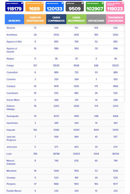 En tanto la pandemia avanza; de acuerdo al reporte de este Domingo 21 de febrero, la Secretaría de Salud reportó la existencia de 118 mil 179 casos acumulados, desde hace casi un año que llegó la pandemia a México, misma que a esta misma fecha ha causado la muerte de 9,509 defunciones, con la posibilidad de que a fin de mes rebasemos las 10 mil, según comentó el secretario de salud.