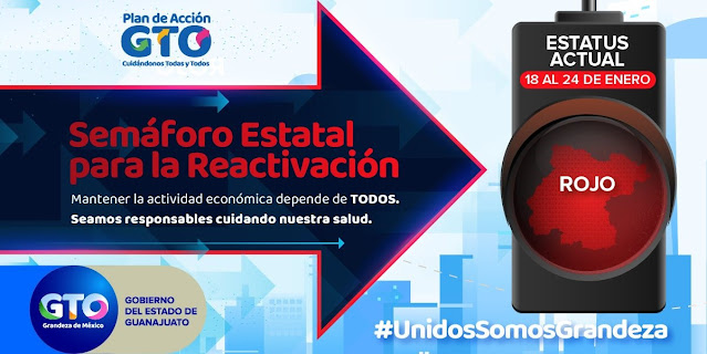 Celaya, Gto. (17 de enero de 2021).- Este lunes 18 de enero inicia un nuevo período del Semáforo Rojo, calculando se cierre el 24 de enero, como ya lo había anunciado el secretario de Salud, Daniel Alberto Díaz Martínez. Las autoridades determinaron ampliar, por ocho días más, las medidas que implican estar en semáforo rojo, debido al incremento en número de contagios, confiando en que la población coopere para limitar la movilidad de las personas, principalmente las que no tengan por qué salir de casa, así como el cumplimiento de las medidas preventivas, tanto personales, como de los establecimientos y empresas que deban seguir operando.