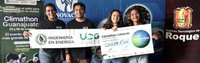En la competencia del Climathon Guanajuato 2025, en el que participaron emprendedores, estudiantes, investigadores y desarrolladores de instituciones educativas de nivel superior, se presentaron propuestas tecnológicas y digitales de alto impacto, orientadas a mitigar los efectos del cambio climático, contribuyendo a la sostenibilidad y al bienestar social. Los ganadores de los tres primeros lugares, de la convocatoria: “Proyectos que Transforman Retos en Oportunidades”, fueron para: la Universidad Politécnica de Guanajuato (UPG), el Centro de Investigación y Asesoría Tecnológica del Estado de Guanajuato (CIATEG) y la Universidad Tecnológica del Norte de Guanajuato (UTNG)/Tecnológico Nacional de México Campus Roque (TecNM Roque), uno, dos y tres, respectivamente.