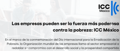 Con motivo de la conmemoración del Día Internacional para la Erradicación de la Pobreza, la Cámara de Comercio Internacional de México (International Chamber of Commerce México -ICC México-) hizo un llamado al sector empresarial a fortalecer su compromiso activo, en la lucha contra la desigualdad social, y le recordó que las empresas pueden ser la fuerza más poderosa contra la pobreza, por su capacidad de generar empleos dignos, impulsar la innovación y fomentar el desarrollo sostenible, así como garantizar que todas las personas tengan acceso a una vida digna, con oportunidades de desarrollo y bienestar.