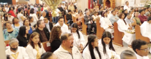 En su mensaje de esta noche, Mons. Aguilar Ledesma invitó a los fieles a reflexionar en la presencia de Cristo, representado en Cirio Pascual, como luz del mundo; Él, es mismo que después de su muerte en la cruz, bajó al sepulcro y resucitó para darle a la humanidad otra dimensión de vida eterna. Como lo anunció el ángel a las mujeres que visitaron el sepulcro muy de mañana: “Ya no está aquí ¡Ha resucitado!”.