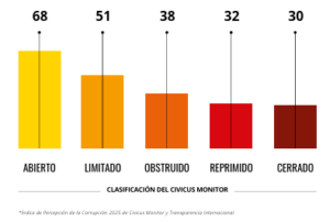 Aunque México obtuvo un punto más en el índice 2025, comparado con el año anterior, el avance marginal no se tradujo en una mejora real, por una baja de cinco puntos respecto a 2023, muy lejos de los niveles que se requieren para fortalecer su competitividad y generar confianza.