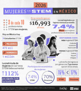 En este contexto, el Instituto Mexicano para la Competitividad (IMCO) reconoce que, el énfasis de la administración federal para fortalecer las áreas STEM, abre una oportunidad para cerrar la brecha de género desde la educación, aunque falta una implementación clara.