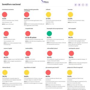 Al cierre de 2025, la economía de México se caracterizó por un crecimiento muy bajo (estimado entre 0.3% y 0.5% anual) y un contexto de alta incertidumbre, con la mayoría de los indicadores clave, como el empleo formal y la inversión, en niveles de alerta (rojo o amarillo), de acuerdo al seguimiento del observatorio y análisis de “México, ¿cómo vamos?”